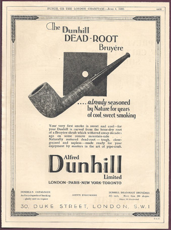 The "DR" (Dead Root) stamping on the left side of a Dunhill pipe corresponds to a straight grain.