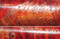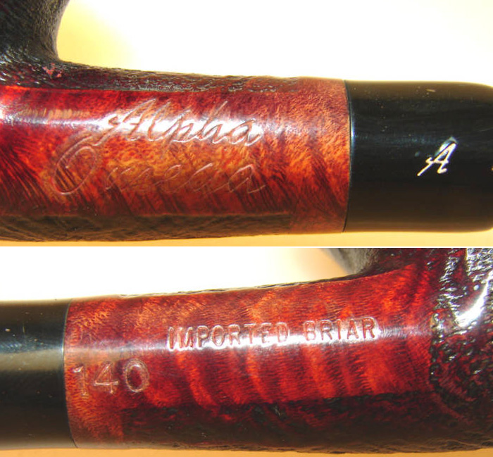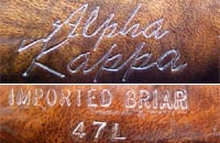 Alpha pipes with a cursive A on the stem and a Greek letter name are made at the Dr. Grabow/Lane Ltd. factory in North Carolina (USA).