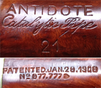 Jeantet's "Antidote" pipes won some awards on the international scene. These pipes were mentioned in letter heads or in the workshops of the factory by posters (See Dok). This pipe is meerschaum lined.