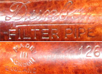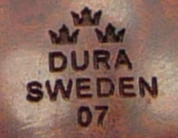 Markings: after 2004 pipes are machine-engraved and the Swedish national ensign of the "Tre Kronor" is added above "Dura".