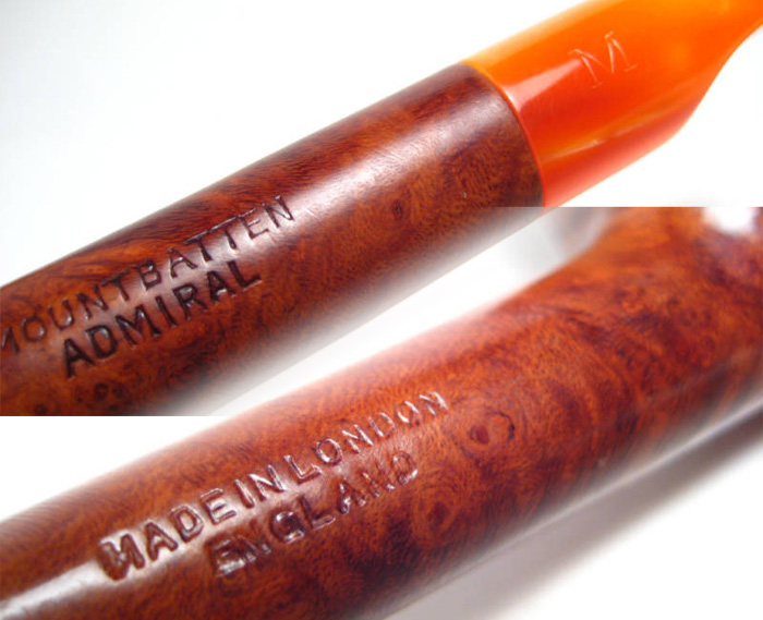 Markings: the pipes are stamped with the maker's initials (M on S).