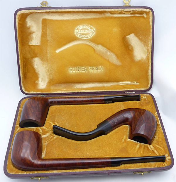 Une pipe courbe et deux droites dans la finition Guinea Grain.