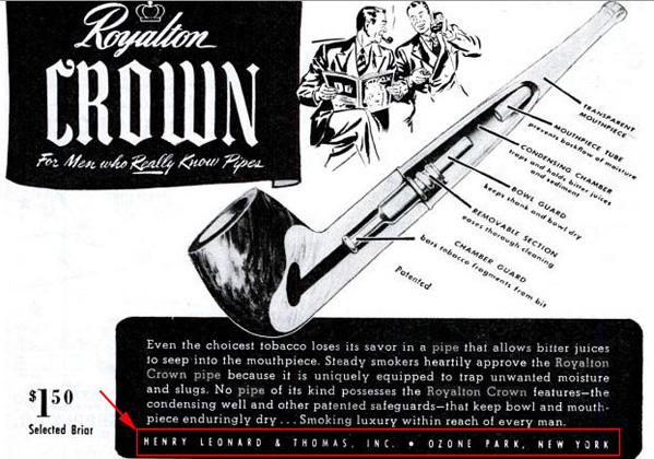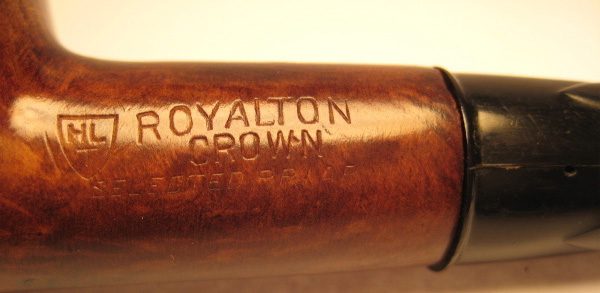 Marquage d'une pipe Royalton Crown qui présente l'écusson HLT (Henry Leonard & Thomas)