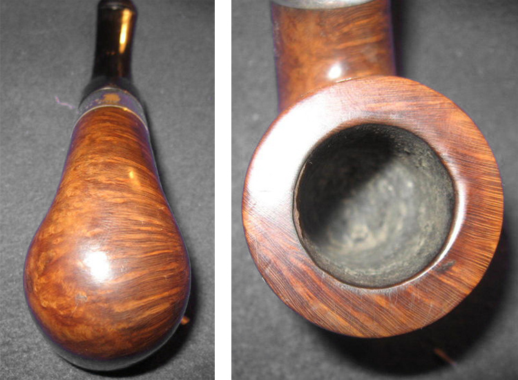 La bague sur la pipe est en argent non validé par un poinçon, rendant ainsi la pipe impossible à dater.