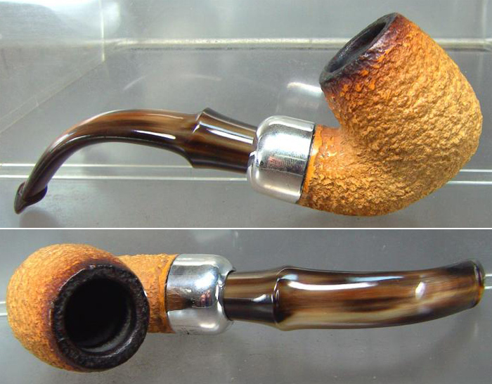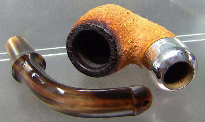 Le tuyau de cette pipe est en corne et constitue un des rares exemples d'un P-lip réalisé dans cette matière.