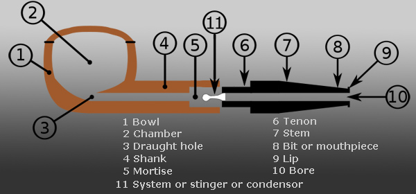 of the pipe is perpendicular to the stem, certainly. But the bore
