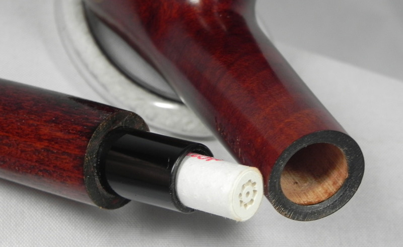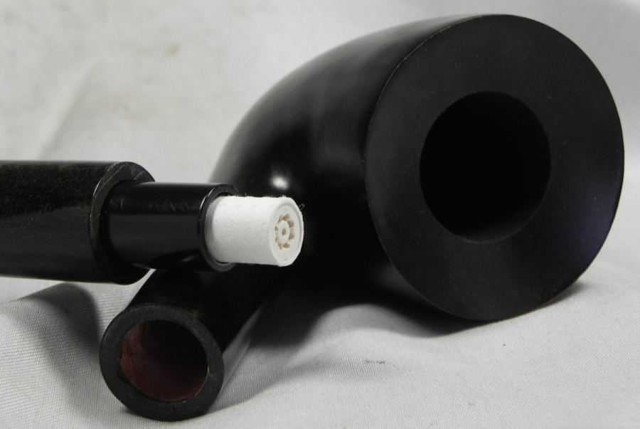 La lentille, partie que l'on porte en bouche, est conçue à la manière des antiques pipes en argile. Elle est cylindrique alors qu'aujourd'hui l'embout est aplati pour offrir un port de la pipe confortable et une ergonomie salutaire pour vos mâchoires.