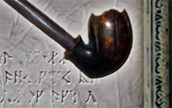 Mis à part le parchemin jauni, l'écriture cabalistique, la carte du pays imaginaire, la pipe du fabricant est systématiquement mise en regard d'un personnage du film muni de l'instrument.