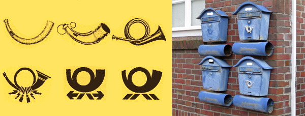 très stylisé, y est resté le symbole de la poste jusque sur la boite à lettre de Peter, Paul ou Jakob.