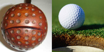 La forme du club de golf, on l'a vu, est particulièrement propice à une transposition dans le monde des bouffardes. Les balles de golf peuvent, quant à elles, être traduites en un fourneau de pipe. Leur rondeur y est particulièrement propice.